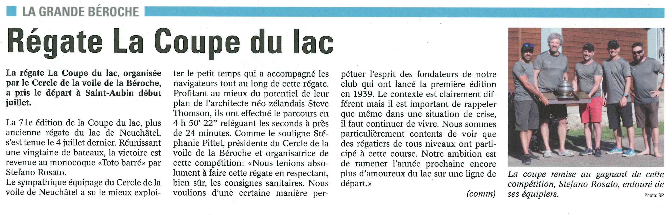 La 72ème Coupe du Lac a été remportée par TOTO pour la deuxième année consécutive; bravo à cet équipage dynamique et fort sympathique. Le rendez-vous est pris pour 2022; la 73ème CdL aura lieu le samedi 2 juillet. |